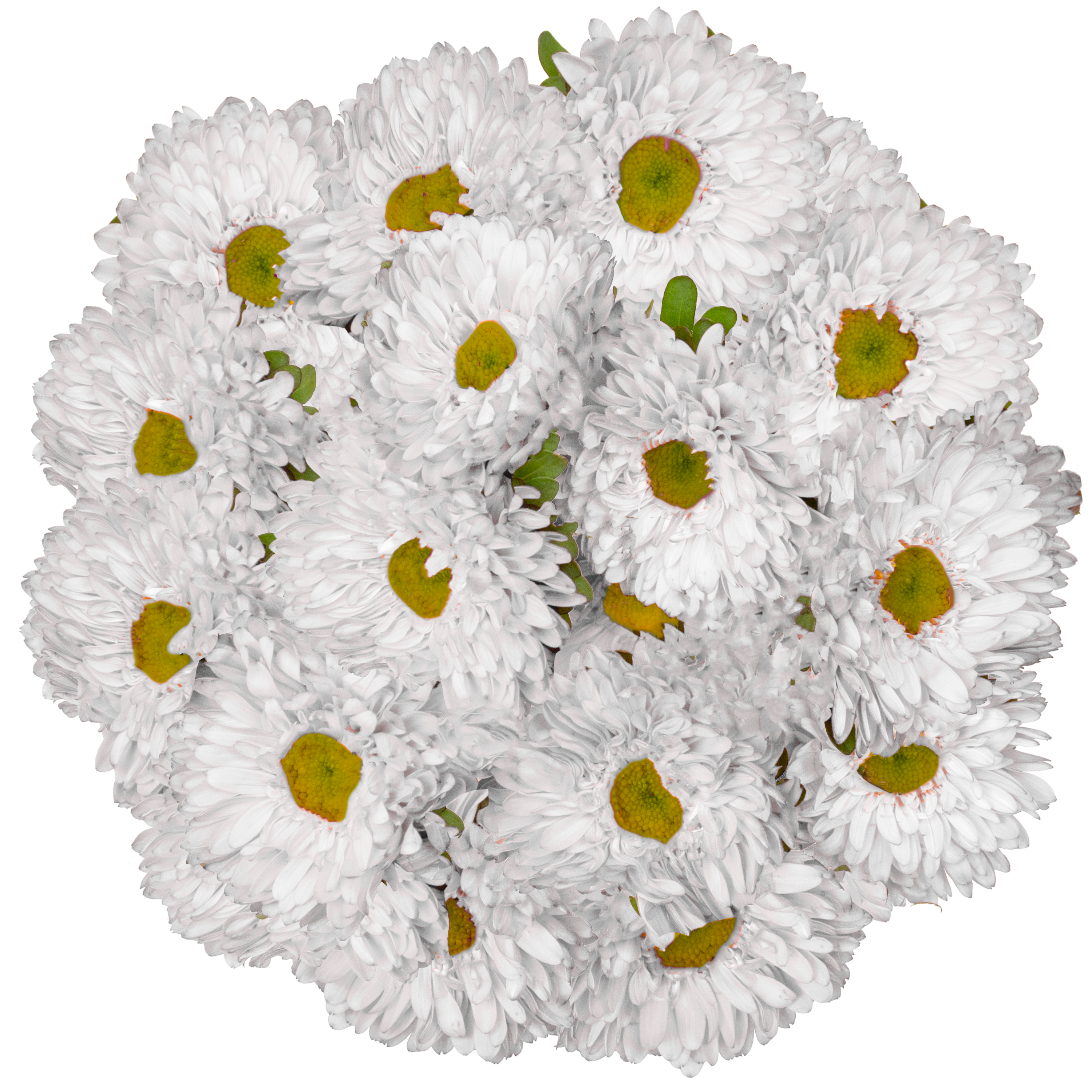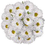 White Matsumoto Asters look like a cross between a daisy, white ball dahlia and white cushion mum.  More substantial than a daisy, lighter than a mum or dahlia, but cheerful and eye-catching, white matsumoto asters are a great accent/filler flower that provides texture, and mass in arrangements.  White Matsumoto Asters are perfect for romantic, garden, wildflower or meadow inspired bouquets.