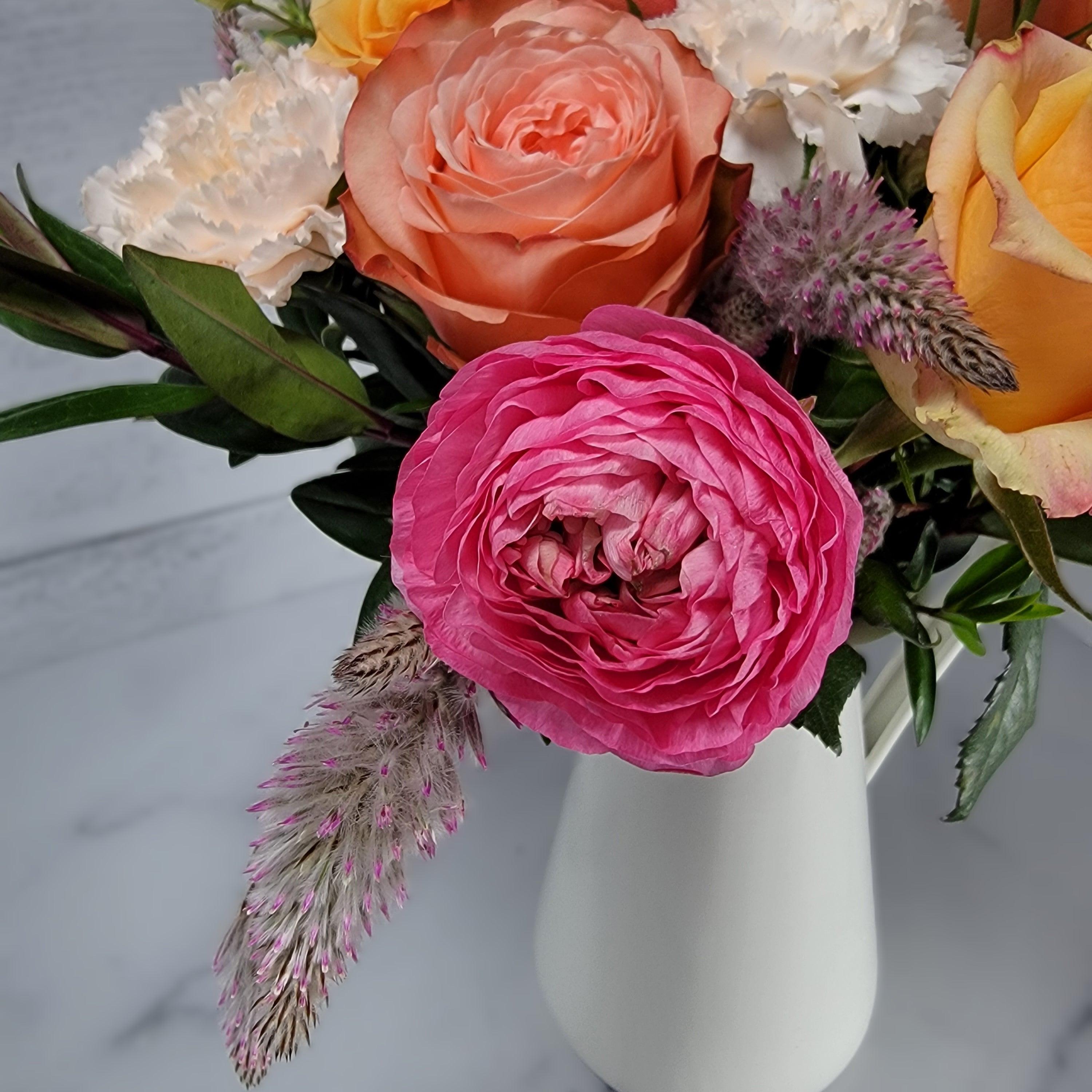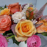If you love that magical time at sunset, when the colors of the garden softly glow, then Magically Delicious is made for you.  Dusty peach Kahala roses, blend with golden yellow Alquimia roses to capture that perfect sunset; while dusty lavender Matilda, soft pink larkspur and roses hold onto that last bit of bright, warm sunlight - well it's just Magically Delicious.