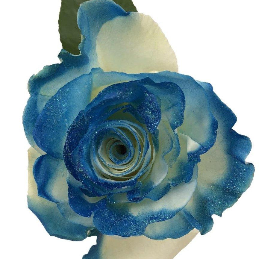 White Rose Bouquet with Dark Blue Glitter 1-Stem Rose