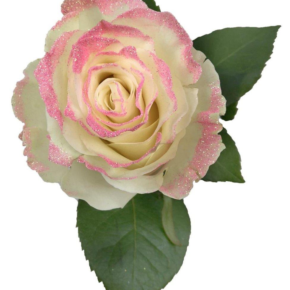 White Rose Bouquet with Light Pink Glitter 1-Stem