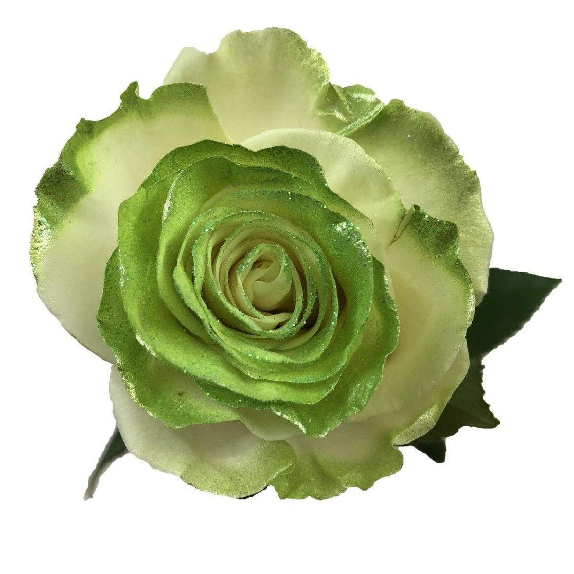 White Rose Bouquet with Lime Green Glitter 1-Stem