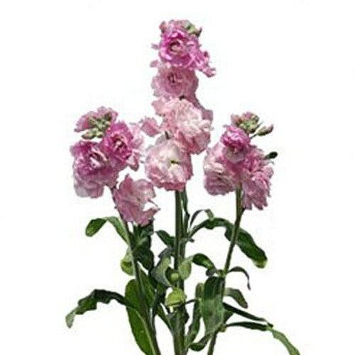 Available year round, our Wholesale Light Pink Spray Stock is cut and shipped straight from our environmentally friendly and socially responsible farms in Equador. These farms produce exceptionally beautiful, full, high grade, reliable and superior flowers. We 100% guarantee their quality and freshness. Once you receive your Spray Stock, remove any leafy foliage that will fall below the water line, cut approximately 1/2 - 1 inch off the bottom of the stems and place them in fresh, cool water, preferably with flower food. It is perfectly normal for Stock to look thirsty or "tired" upon arrival. They will perk up once they receive a "fresh cut" to their stems and have time to drink up fresh water. We recommend you receive your Spray Stock 2-3 days before your event.