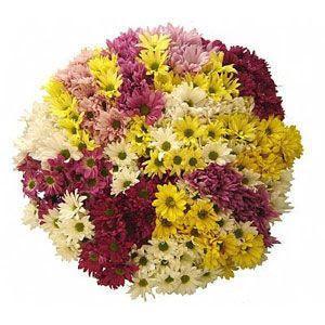Chrysanthemums Daisies (or Daisy Poms as they are often referred to) are a family of flowers whose blooms remind us of sunshine, happiness and relaxed summer days. They are one of those flowers that just brings a smile to your face. Daisy Poms are a spray flower, meaning they have multiple blooms per stem. This feature instantly adds volume to any floral arrangement and makes them a very popular filler flower. Daisy Poms come in a wide range of natural colors, but they also take tinting very well - allowing you to customize these flowers to your specific needs. Daisy Poms blend into any type of floral design, work well in flower foam as well as in water based centerpieces, and they look great out of water for long periods of time. In addition, Daisy Poms are extremely hardy, quite long lived, and very affordable - making them one of the most popular flowers sold for all types of designs.