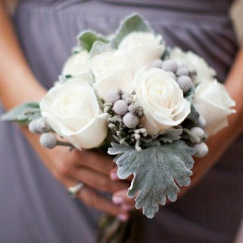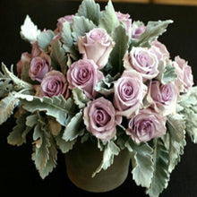 Dusty Miller is a gray, sage green leaf that finishes off bouquets and centerpieces beautifully.  It is soft and delicate, adding an elegant and stylish texture to every type of floral arrangement. Its beautiful gray color blends harmoniously with any color scheme, making it a perfect "green" for weddings and events in every season. It works wonderfully in all winter or formal white florals, as well as with springtime pastel color palettes, or next to the rich reds, burgundies, oranges, and yellows in fall arrangements.  Dusty Miller Flat Leaf is available year-round, and despite its delicate texture, is remarkably hardy and easy to work with.