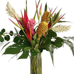 Our Large Tropical Centerpieces are shipped directly from our environmentally friendly and socially responsible farms - guaranteeing your centerpieces will be made using only the highest quality, freshest flowers available. In fact, the farm that produces these beautiful centerpieces plants every seed themselves, and harvests each bloom by hand on land that they have rescued from injured areas of the Rainforest. By purchasing these centerpieces, not only will you have the most beautiful tropical centerpieces available, your purchase will help promote reforestation of the Rainforest with its native flora. The flowers used to make up our mini-centerpieces are very long-lasting - however, for best results, we recommend you follow our Tropical Centerpiece Care Instructions below.