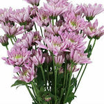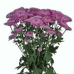 Cushion Mums are a medium sized Mum, with each stem sporting multiple blooms ranging in size from 1 to 3.5 inches in diameter, on average. Cushion Mums have multiple medium length petals surrounding a "pin-cushion like" center. Cushion Mums provide volume as well as a unique textural element that pairs well with just about any type of flower in most floral designs. They pair very well with snapdragons, roses, lilies, stock and gerbera daisies. They are commonly used as a filler flower, but could be used individually in small bud vases for more relaxed farm or wildflower themed events. Our Wholesale Lavender Cushion Mums are available year round and are cut and shipped straight from the farm - and we 100% guarantee their quality and freshness. Once you receive your Lavender Cushion Mums, remove any leafy foliage that will fall below the water line, cut approximately 1/2 - 1 inch off the bottom of the stems and place them in fresh, cool water, preferably with flower food. It is perfectly normal for Mums to look thirsty or "tired" upon arrival. They will perk up once they receive a "fresh cut" to their stems and have time to drink up fresh water. We recommend you receive your Mums 2-3 days before your event.