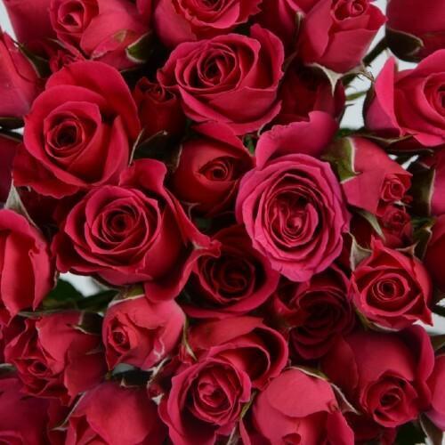 Spray Roses are the smallest member of the Rose family, with each stem sporting multiple small blooms about 1  to 2 inches in diameter.  Our Wholesale Hot Pink Spray Roses are available year round and are cut and shipped straight from the farm - and we 100% guarantee their quality and freshness.   To protect the flowers, our Spray Roses are shipped with their guard petals still attached.  All roses have several outer petals that surround the rose blooms which may appear bruised, torn or discolored.   THIS IS NORMAL.  Simply remove these few outer petals once you have finished hydrating the roses.  It is not uncommon for each rose bloom to have 3 - 5 guard petals.  Once you receive your Hot Pink Spray Roses, remove any leafy foliage that will fall below the water line, cut approximately 1/2 - 1 inch off the bottom of the stems and place them in fresh, cool water, preferably with flower food.  It is perfectly normal for Spray Roses to look thirsty or "tired" upon arrival.  They will perk up once they receive a "fresh cut" to their stems and have time to drink up fresh water.  For your Spray Roses to look their best, we highly recommend you follow our care instructions below.  We recommend you receive your Spray Roses 2 days before your event.