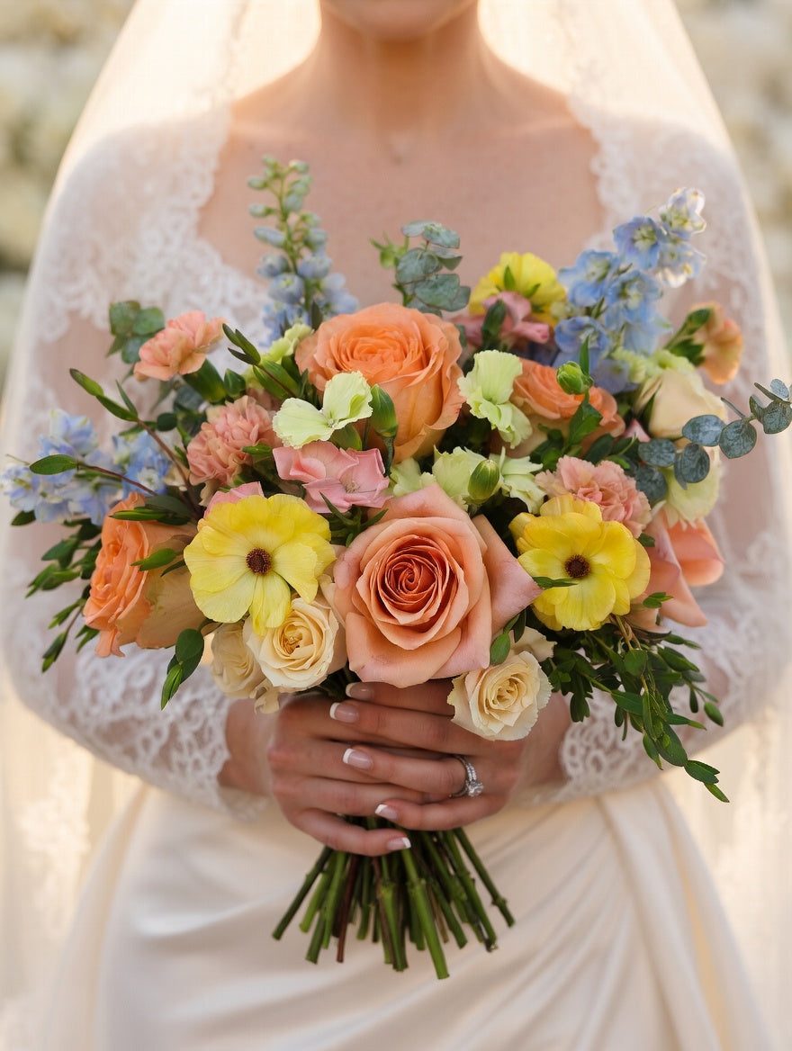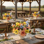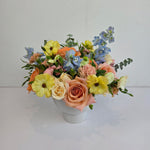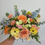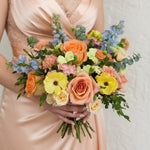 Our Sunkissed DIY Box was created to capture the trending yellow Pinterest pallet so popular with todays couples. The Sunkissed Collection includes a gorgeous mix of butter yellow, golden hued and cream florals that will allow you to create warm, dreamy, light filled arrangements perfectly. Each box includes all the ingredients you need (focal flowers, line flowers, filler flowers, texture flowers and greenery) to design everything from intimate events to garden-inspired celebrations. Need something extra? Want to change the quantity or type of flowers included? Just give us a call at 207-618-7618 and we can customize it just for you.