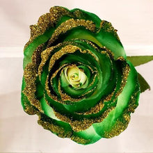 3 Stem White Roses with Dark Green Paint and Gold Glitter Rose Bouquets - Require 7 Days Advance Notice!