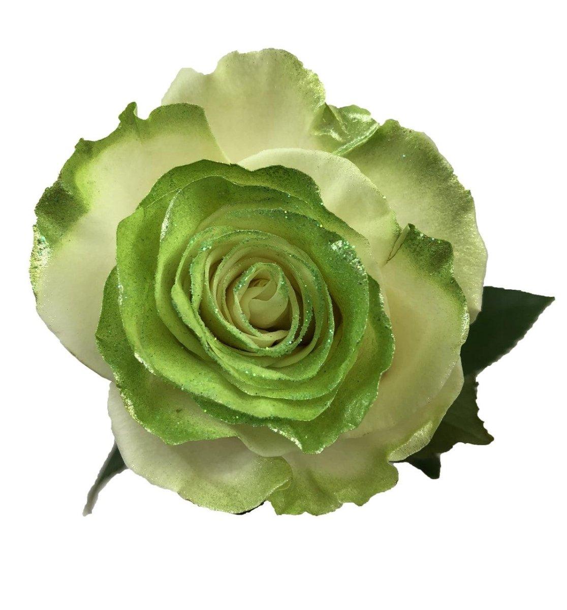 1 Stem White Rose with Lime Green Glitter Rose Bouquets - Require 7 Days Advance Notice!